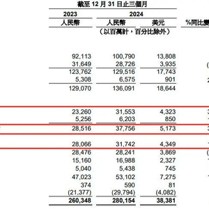 从阿里云与 AI 业务来看,阿里云 2024 年第四季度收入突破 300 亿大关,同比增速 13%,历经两年半后增速重返双位数,彰显出阿里云在技术研发与市场拓展上的成功。AI 相关产品收入连续 6 季度三位数增长,这不仅是技术实力的体现,更是市场需求爆发的证明。阿里即将发布基于 Qwen2.5-Max 的深度推理模型,1 月底发布的千问旗舰版 Qwen2.5-Max 在多项权威基准评测中处于业界领先水平,全球衍生模型已突破 9 万个,这表明阿里在 AI 领域的技术积累和创新能力,也预示着云业务未来增长潜力巨大,有望成为阿里新的业绩增长引擎。