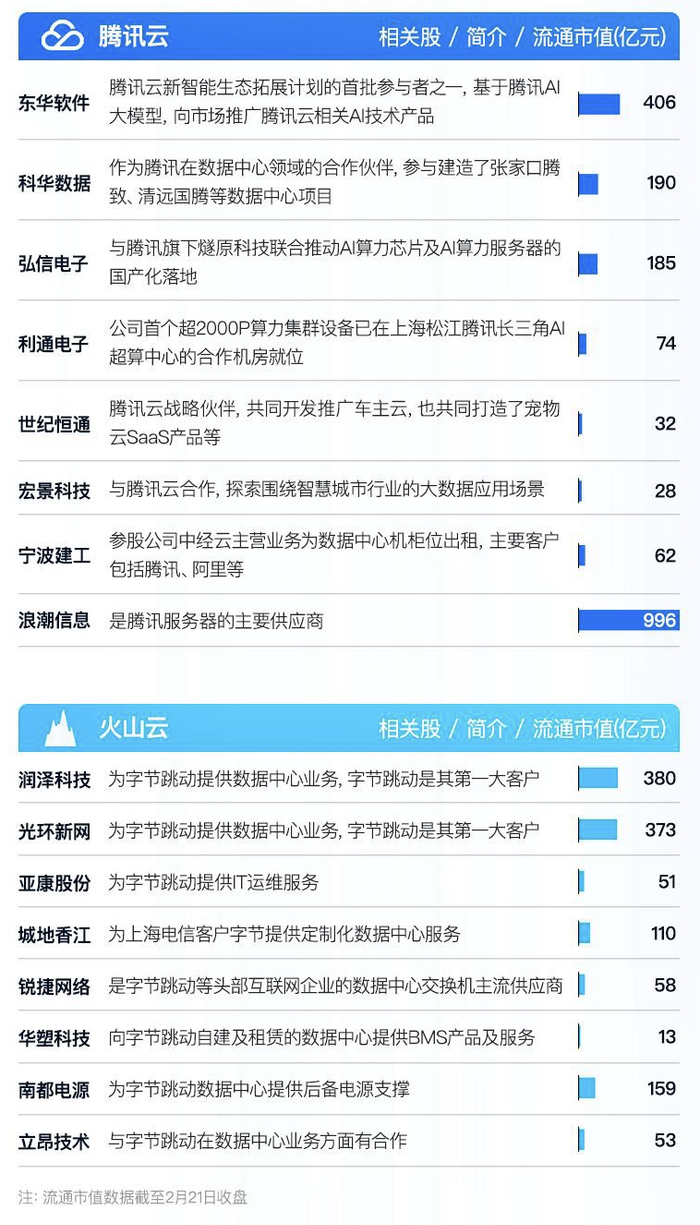 这对云计算行业而言,无疑是重大利好。从技术层面看,大模型对云厂商的技术架构、服务模式、收费模式和应用生态带来重塑,DeepSeek 加速了这一进程,促使云厂商调整算力服务重心,扩展下游市场需求,加大 AIDC 基础设施投入。对公有云基础设施产业链来说,推理算力需求有望加速增长,带动国内 AIDC 的加速建设,加速昇腾卡为代表的国产卡的国产替代进程,利好产业链各个环节的供应商,如硬件设备制造商、芯片供应商等,他们将迎来更多订单和业务增长机会。