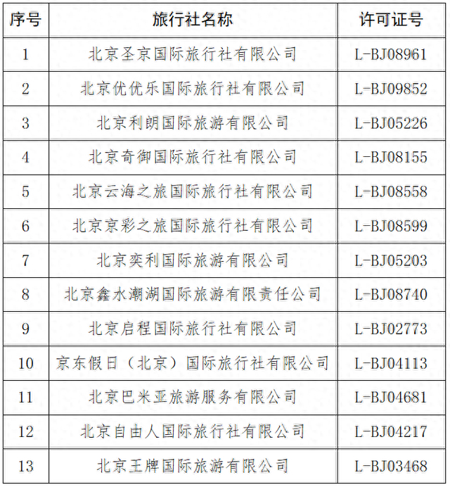 根据我市旅行社涉诉情况统计,现公示2025年2月10日—2月16日,北京市投诉量排名前十旅行社名单如下: