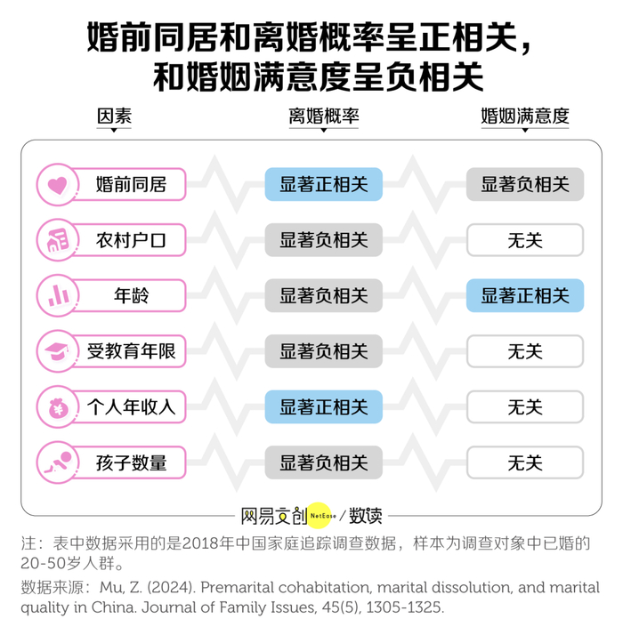 值得注意的是,这不是说“同居”经历本身会导致人容易离婚。