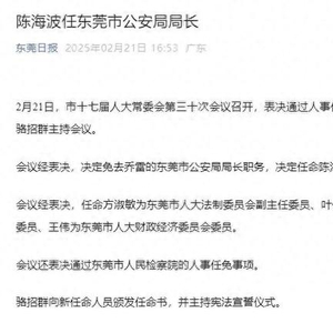 会议经表决,决定免去乔雷的东莞市公安局局长职务,决定任命陈海波为东莞市公安局局长。