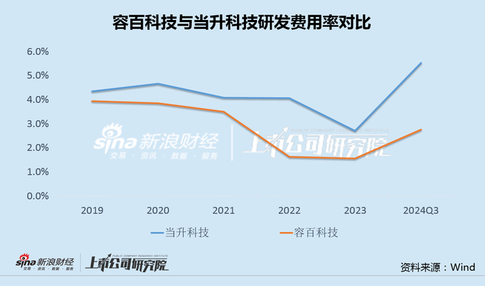 数据显示,容百科技研发投入长期低于当升科技,并且自2022年以来,两家公司研发投入力度的差距还有扩大趋势。