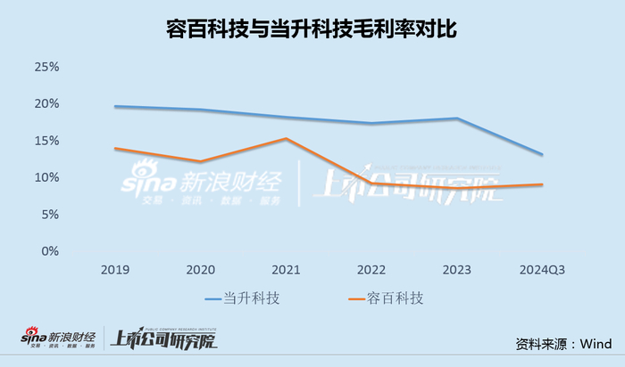 然而,时至今日,两家公司业绩和盈利能力的差距却显而易见。数据显示,近几年来,容百科技毛利率持续低于当升科技,且一直相差5个百分点左右。