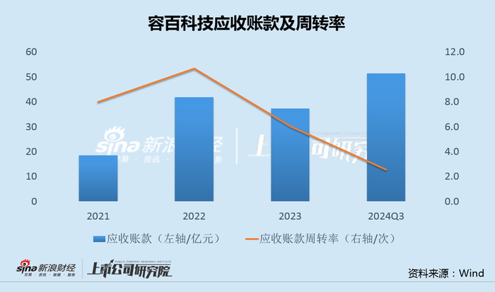 数据显示,自2021年至2024年三季度末,容百科技应收账款从18.5亿逐步攀升至51.4亿。