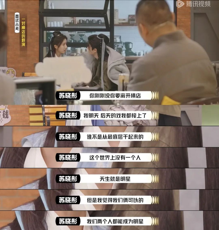 卜冠今从“小特约”、“小跟组”开始做起,迄今已经入行9年了。她想要演困境中的边缘人物,却不得不听从公司的安排,去接有“市场热度”的剧;她内心不希望被规则裹挟,行为上又不敢“离经叛道”。今年30岁的她对职业感到迷茫,于是决定重新出发,为自己的演员初心放手一搏。在第二期节目里,她与吴镇宇即兴对戏,有来有往,虽有瑕疵也难掩光芒。这样的表现源自她对演员职业的尊重,也与她之前表达的对表演的理解遥相呼应:“表演赋予我感同身受的‘超能力’,让我不再对周围苦难视而不见。演员的价值就是让观众通过我们看见自己,看见众生。”正如26岁的苏晓彤在节目里,用生活化的细节和台词,让大家看到了一个心怀梦想辛苦工作的横店群演女孩生动鲜活的模样。她即兴的那句台词“谁不是从底层干起来的,这世界上没有一个人天生就是明星”,是角色对职业的朴素信念,也击中了观众最柔软的内心。