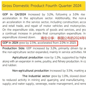 按市场价格核算,泰国全社会在2024年创造出来的名义GDP规模约为18.579万亿泰铢,与上年的水平相比,剔除各种商品与服务的价格上涨因素,获得了2.5%的实质性增长,低于预期。