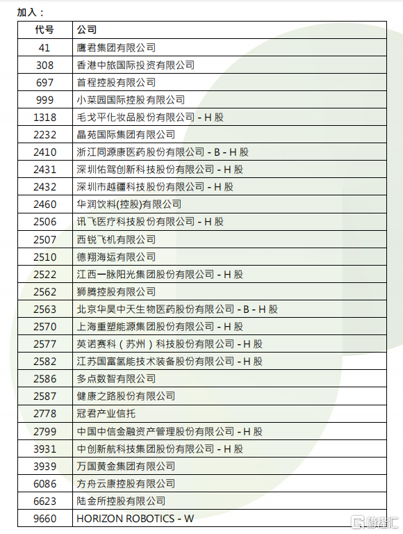 根据港股通的调整规则,恒生综合指数成份股的变动将影响港股通可投资证券的调整。