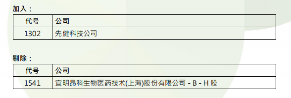 此外,恒生生物科技指数成份股数目维持 50 只。先健科技公司获加入,宜明昂科遭剔除。