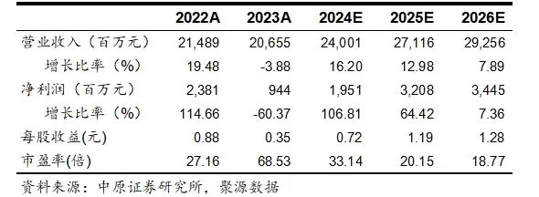 盈利预测与投资建议:预计公司2024、2025年EPS为0.72元和1.19元,以2月20日收盘价23.95元计算,PE分别为33.14倍和20.15倍。考虑到行业前景与公司的行业地位,维持公司 “增持”的投资评级。