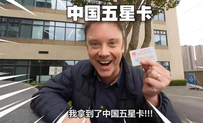 拥有183万粉丝的外国博主李格曾在社交媒体分享过自己拿到了中国“五星卡”。