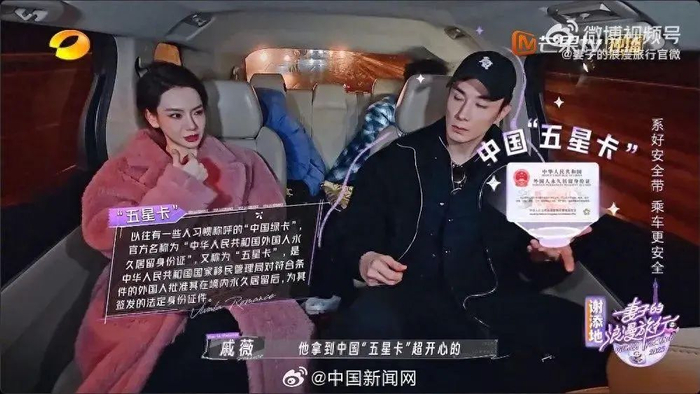 李承铉还在节目中提到,拥有“五星卡”,他过海关的时候,就不用跟其他老外一样走外国人通道,直接扫脸就可以过。李承铉说的时候神情非常骄傲,仿佛拥有“特权”。戚薇也在一旁说,这蛮值得嘚瑟的。