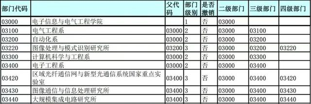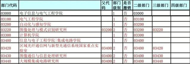 对比更新前的上海交大校内单位代码可以发现,03100、03200、03300、03400此前分别为电气工程系、自动化系、计算机科学与工程系、电子工程系,为03000电子信息与电气工程学院下设二级部门。更新后,电子信息与电气工程学院、电气工程学院、自动化与感知学院、计算机学院、信息与电子工程学院|集成电路学院已均为一级部门。