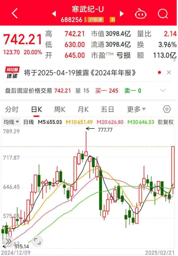 科创板AI芯片第一股寒武纪-U罕见涨停
