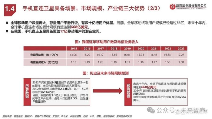 手机直连卫星具备场景、市场规模、产业链三大优势