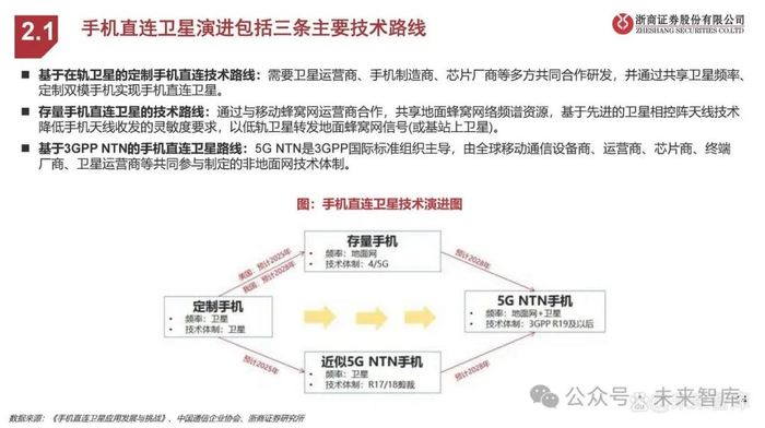 手机直连卫星演进包括三条主要技术路线