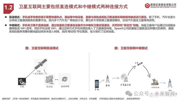 卫星互联网主要包括直连模式和中继模式两种连接方式