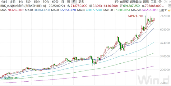 从伯克希尔的股价走势来看,最近20多年,呈现出稳步攀升的态势。