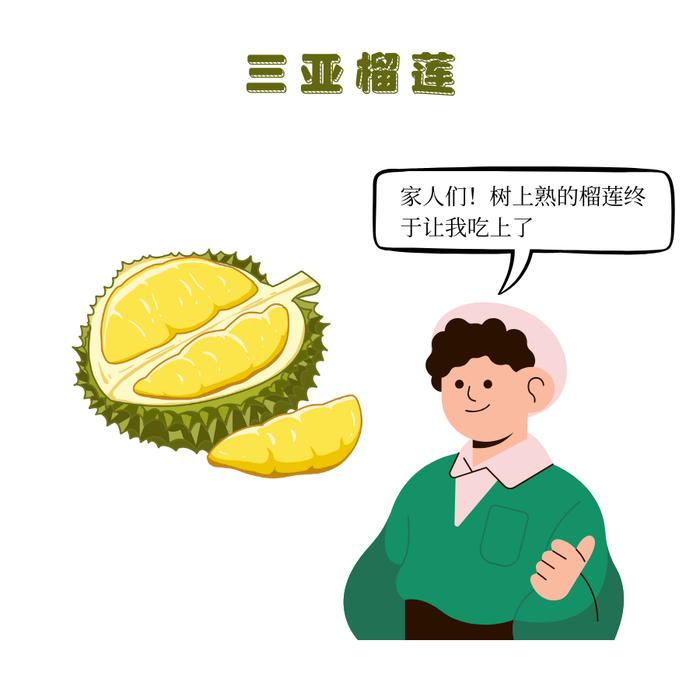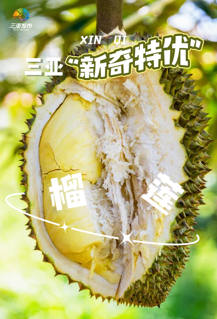 榴莲被誉为“热带水果之王”,2018年海南的科研单位开始开展榴莲种植的探索与实践。2023年,三亚约1400亩榴莲挂果,产量为50吨左右,成为首批规模化采收的国产榴莲。引进榴莲产业是“新奇特优”水果在三亚产业化的具体体现,也是榴莲品种在中国的首发。