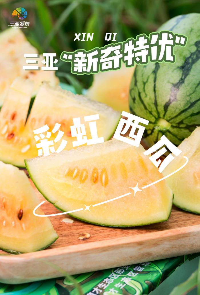 彩虹西瓜诞生在中国农业科学院郑州果树研究所三亚南繁基地。因其瓜肉瓤色特别,红橙相间,横切面带有隐约的花朵形状,纵切剖面似一道美丽的彩虹而得名。彩虹西瓜不仅颜值高,综合口感更是一绝!比普通西瓜还要甜2-3度,入口一瞬间便是满口的沙甜,从中间一直甜到瓜皮。