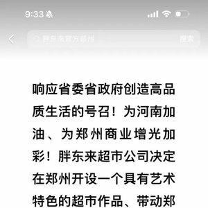 据联商网消息,2月23日,胖东来创始人于东来在社交媒体发文称,为响应省委省政府创造高品质生活的号召,为河南加油、为郑州商业增光加彩,胖东来超市公司决定在郑州开设一个具有艺术特色的超市作品,带动郑州商业更加美好,为郑州增添美丽!