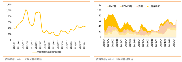 后市预测:百川盈孚预计下周LME铜价区间在9200-9500美元/吨之间,沪铜区间75000-78500 元/吨。市场焦点依然在于全球贸易关系上,后续的发展依然存在较高的不确定性;而国内市场的积极性信号对市场情绪有所提振,短期上来看宏观层面对于铜价的影响或相对温和一些。基本面上,铜精矿现货TC仍然处于负数,市场供应紧张不减;而随着假期的影响基本结束,市场逐步回归正轨,社会库存虽然仍处于积累状态,但增量明显放缓,市场消费逐步体现出活力;然而面对后续即将到来的国内检修高峰,以及进口盈利窗口持续处于大幅倒挂状态,国内后续或将处于国内产出下降,进口减少而出口增多的状态,库存也将因此开启去库状态,这一状态预计在2月底或3月初就将体现,且从国内期货的合约结构上也不难看出,市场变化即将到来。整体来看,铜价依然存在较强的底部支撑,铜价仍将延续高位震荡的表现,不过随着市场的供应收紧和消费回温的预期逐步体现,铜价或有破位上行的机会,预计国内铜价运行区间在76500-79500元/吨,LME铜运行区间在9390-9800美元/吨。