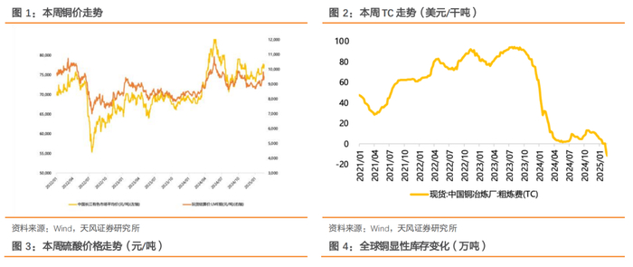 基本金属:铜价高位震荡运行 社库累库幅度放缓。1)铜:铜价高位震荡运行,沪铜收盘于77420元/吨。市场焦点依然在于全球贸易关系上,后续的发展依然存在较高的不确定性;而国内市场的积极性信号对市场情绪有所提振,短期上来看宏观层面对于铜价的影响或相对温和一些。基本面上,铜精矿现货TC仍然处于负数,市场供应紧张不减;而随着假期的影响基本结束,市场逐步回归正轨,社会库存虽然仍处于积累状态,但增量明显放缓,市场消费逐步体现出活力;然而面对后续即将到来的国内检修高峰,以及进口盈利窗口持续处于大幅倒挂状态,国内后续或将处于国内产出下降,进口减少而出口增多的状态,库存也将因此开启去库状态,这一状态预计在2月底或3月初就将体现,且从国内期货的合约结构上也不难看出,市场变化即将到来。整体来看,铜价依然存在较强的底部支撑,铜价仍将延续高位震荡的表现,不过随着市场的供应收紧和消费回温的预期逐步体现,铜价或有破位上行的机会,预计国内铜价运行区间在76500-79500元/吨,LME铜运行区间在9390-9800美元/吨。2)铝:本周铝价上涨,沪铝收盘于20830元/吨。海外政策频频,外盘铝价上行带动,叠加国内宏观情绪尚可,新能源汽车数据继续向好,本周现货铝均价小幅上涨。供应方面:本周中国电解铝企业继续复产,复产集中于山西以及四川地区,电解铝行业供应继续增加。需求方面:本周铝棒、铝板行业产量较上周增加,依旧复产春节期间减产、停产的产能,对电解铝行业的理论需求继续提升。终端板块,新能源汽车产销表现良好。库存方面:本周LME铝库存继续减少,目前LME铝库54.80万吨,较上周56.61万吨减少1.81万吨。中国方面,本周铝锭社会库存较上周继续增加,目前库存86.78万吨,较78.67万吨增加8.11万吨。建议关注:中国宏桥、中孚实业、云铝股份、神火股份、金诚信、紫金矿业、五矿资源。
