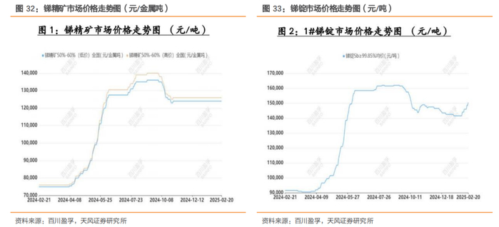 综述:本周(2025.2.14-2025.2.20)国内锑锭价格上涨。截止到2月20日,2#低铋锑锭出厂含税价14.3-14.5万元/吨,2#高铋锑锭出厂含税价14.2-14.4万元/吨,均价较上周同期价格上涨0.15万元/吨,1#锑锭出厂含税价14.9-15.2万元/吨,均价较上周同期价格上涨0.45万元/吨,0#锑锭出厂含税价14.6-14.8万元/吨,均价较上周同期价格上调0.2万元/吨。本周,由于原料紧缺价格迅速升温,商家目前看涨心态强烈,在看涨心态下,市场持货商惜售不出,整体市场现货流通偏紧状态较为明显,下游商家目前还是按需采购,因此本周锑价格上调。