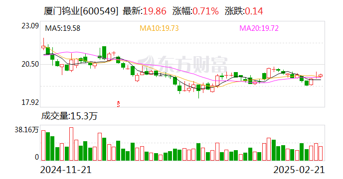 厦门钨业:公司博白县油麻坡钨钼矿建设项目建成达产后预计年均产出钨精矿3,200吨(65%WO3)