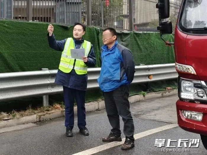 机场高速长沙东收费站安全员王琢发现一辆货车一直打转却找不到想去的地方,主动上前询问司机,并提供帮助。他还特意手绘了一张简易地图,清晰地标注了每个关键路口和转弯方向,连容易混淆的岔道都附上了简短提示。