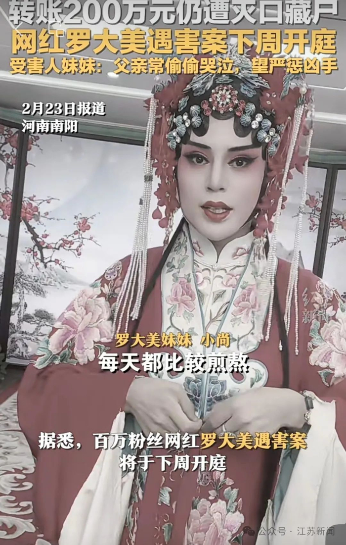 2月23日消息,河南南阳百万粉丝网红罗大美遇害案下周开庭。