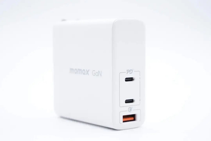 摩米士这款氮化镓充电器采用白色外壳,折叠插脚,端面为切面设计。充电器配备了140W快充口,另外两个接口最大输出功率也有100W和30W,整体表现强悍,满足苹果多设备党极致快充、外带便携、多设备同时快充等应用需求。