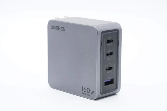绿联这款160W氮化镓充电器采用方形外观设计,配有折叠插脚,便于日常携带收纳。充电器具备3C1A接口,USB-C1接口支持140W PD3.1快充和UFCS融合快充,USB-C2接口支持100W快充,USB-C3和USB-A口也支持快充输出,并支持功率自动分配,满足手机和笔记本电脑同时快充需求。