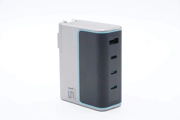 润众这款充电器采用方块机身加折叠插脚理念设计,整体尺寸较小,可以方便商务人士携带出行。同时接口配置数量可观,3C1A接口最多可同时为四个设备供电,支持65W+45W+30W三口或65W+45W+18W四口输出策略,解决苹果系用户多设备同时快充需求。