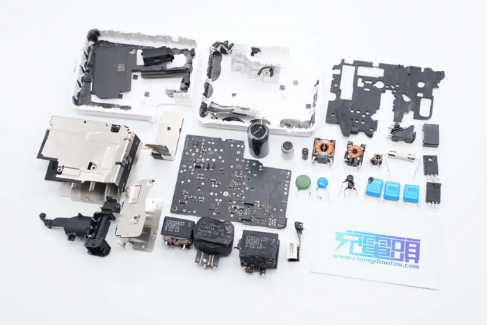 采用钰泰半导体ETA2821为显示小板供电,显示驱动芯片来自中微爱芯。蓝牙模块采用杰理芯片。充电器内部使用昱光电解电容,低压输出采用永铭固态电容,内部USB-C和USB-A接口数据引脚均采用TVS进行静电保护。内部做工扎实,用料可靠。