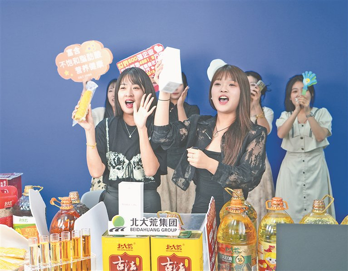 从颗粒饱满的大米到营养丰富的油脂,再到绿色健康的杂粮,主播们对着镜头,热情地介绍着北大荒的优质农产品。直播间里,实时弹幕滚动,订单量不断攀升。这样的场景已成为北大荒电商团队的日常。
