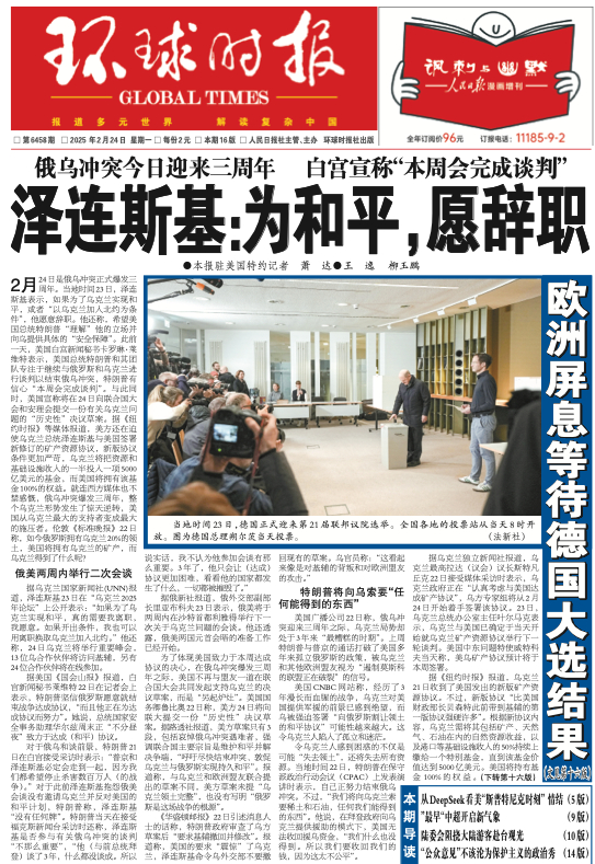 2月24日是俄乌冲突正式爆发三周年。当地时间23日,泽连斯基表示,如果为了乌克兰实现和平,或者“以乌克兰加入北约为条件”,他愿意辞职。他还称,希望美国总统特朗普“理解”他的立场并向乌提供具体的“安全保障”。此前一天,美国白宫新闻秘书卡罗琳·莱维特表示,美国总统特朗普和其团队专注于继续与俄罗斯和乌克兰进行谈判以结束俄乌冲突,特朗普有信心“本周会完成谈判”。与此同时,美国宣称将在24日向联合国大会和安理会提交一份有关乌克兰问题的“历史性”决议草案。据《纽约时报》等媒体报道,美方还在迫使乌克兰总统泽连斯基与美国签署新修订的矿产资源协议,新版协议条件更加严苛,乌克兰将把资源和基础设施收入的一半投入一项5000亿美元的基金,而美国将拥有该基金100%的权益。就连西方媒体也不禁感慨,俄乌冲突爆发三周年,整个乌克兰形势发生了惊天逆转,美国从乌克兰最大的支持者变成最大的施压者。伦敦《标准晚报》22日称,如今俄罗斯拥有乌克兰20%的领土,美国将拥有乌克兰的矿产,而乌克兰得到了什么呢?