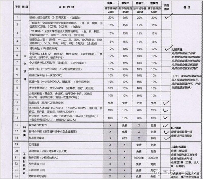张玲当场预付了2880元,决定申请大学生创业补贴。在对方的建议下,张玲还签署了科小补贴(省级科技型中小企业),预付了1000元。她注意到: