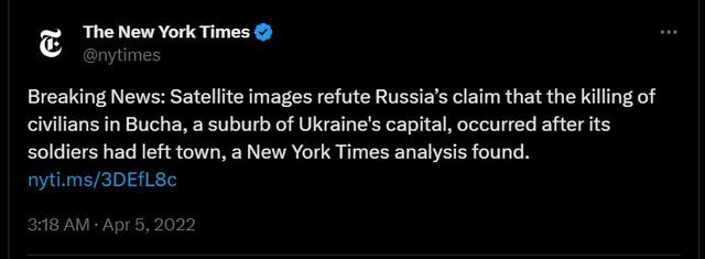 此外,西方媒体还通过信息筛选机制构建信息茧房。俄罗斯公布美国在乌生物实验室的相关文件时,《纽约时报》以“未经证实”为由限制报道,但却对乌克兰“布恰事件”的影像(同样未经证实)进行了全平台推送。