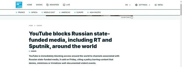 此外,YouTube和Twitter等平台系统性地限制了RT和Sputnik的内容发布,理由是“传播虚假信息”,但同时又允许反俄叙事自由流通。这种不对称的信息管理在欧盟针对俄罗斯媒体的禁令期间尤为明显,该禁令禁止俄罗斯媒体出现在欧盟的新闻报道中,实质上抹杀了俄罗斯在欧洲公共舆论中的存在。这些措施显然与西方所倡导的言论自由原则背道而驰。