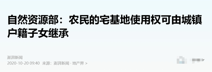 早在2020年,自然资源部等7部委明确:农民的宅基地使用权可以依法由城镇户籍的子女继承并办理不动产登记。