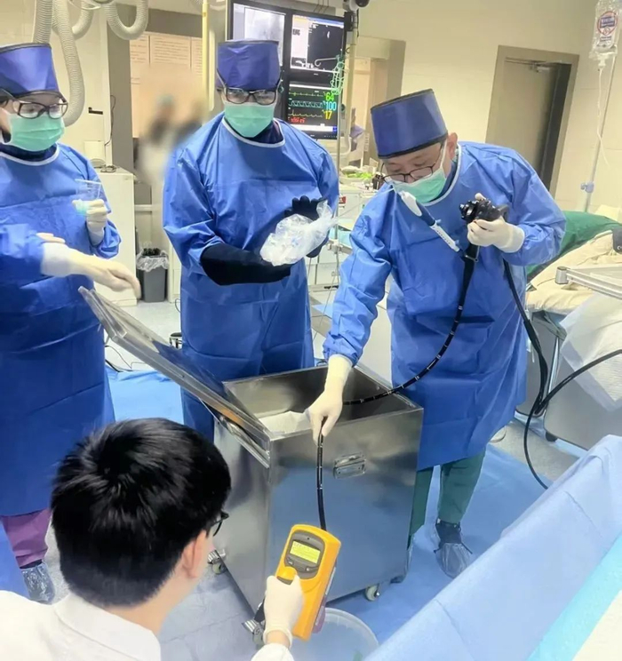 近日,在课题组牵头专家——海军军医大学第一附属医院(上海长海医院)李兆申院士、金震东教授指导下,苏大附二院消化内科主任胡端敏、李兆申院士研究团队蒋斐教授、苏大附二院麻醉科主任医师常留辉与苏大附二院影像科、核医学科、麻醉科、病理科、肿瘤科和介入科多科室紧密协作,共同为吴先生成功注射了一剂“核武器”。