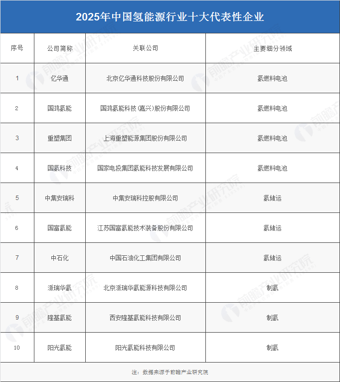 2025年中国氢能源产业供应链十大代表性企业:亿华通、国鸿氢能、国氢科技、中石化、派瑞华氢……