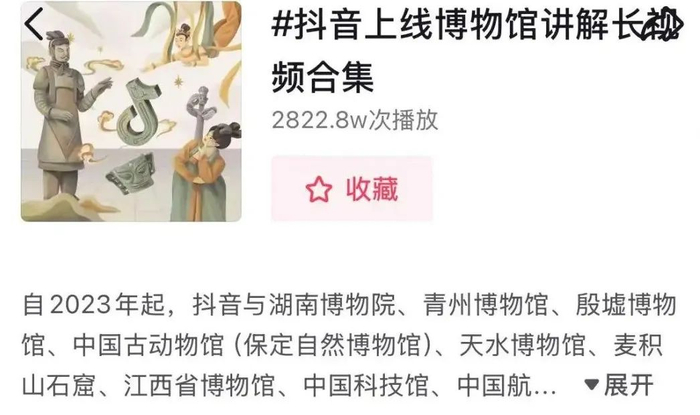 2月20日,江西省博物馆、殷墟博物馆、湖南博物院、青州博物馆、中国古动物馆(保定自然博物馆)、天水博物馆、麦积山石窟、中国科技馆、中国航天博物馆等多家博物馆,在抖音共同策划并上线了9期“院士专家讲解博物馆”长视频合集。