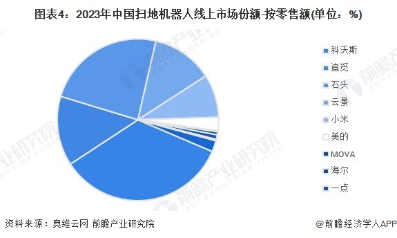 服务机器人方面,个人/家用服务机器人市场以扫地机器人为主,市场份额接近70%。2023年以零售额为统计口径,科沃斯扫地机器人线上市场份额为34%,排名首位;石头科技和追觅排在第二和第三位。