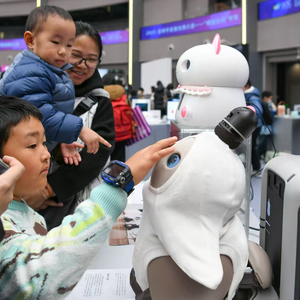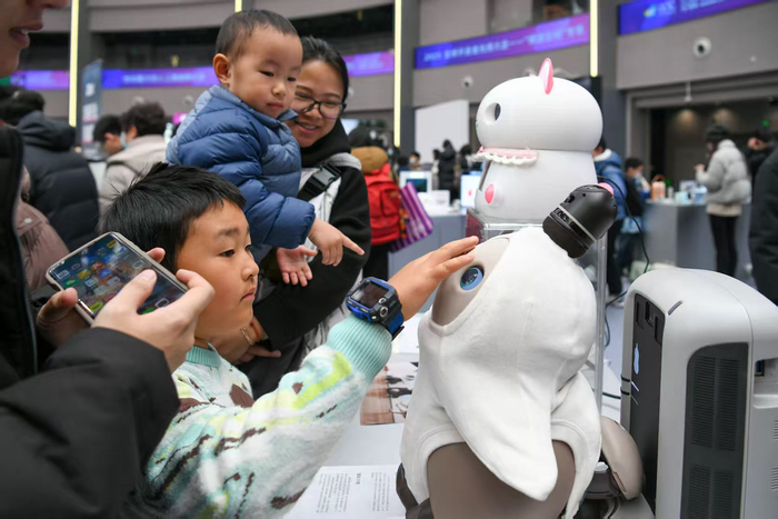 在本届大会的展览区,记者关注到,人形机器人、AI陪伴萌宠、桌面互动AI玩具等产品吸引了大量观众驻足围观。一群孩子围着一台形似“小熊猫”的机器人欢呼雀跃——它能模仿宠物撒娇,还能根据语音指令跳舞、讲故事。一位前来参观的家长感慨:“以前总觉得AI是实验室里的高科技,现在却成了孩子的玩伴。”