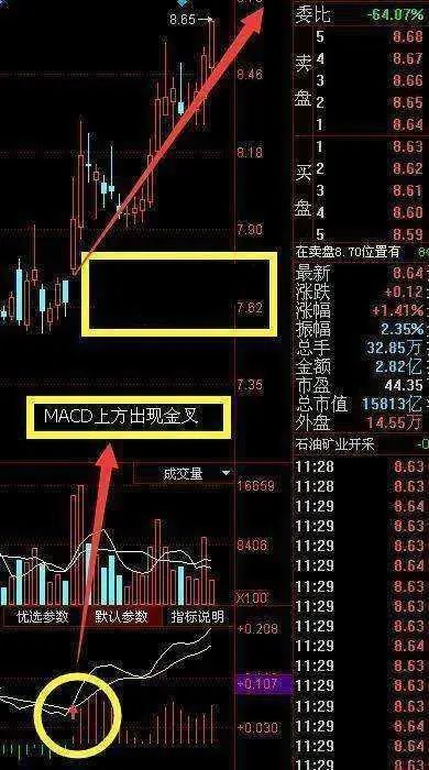 信号三:MACD在零轴上方刚刚发生“黄金交叉”或即将发生“黄金交叉”