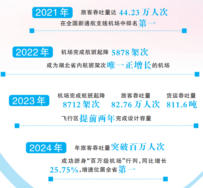 不断丰富“荆楚情”服务品牌内涵,探索“民航+楚文化”人文实践,在这里,一座“小而美”的精品机场,正以崭新的面貌,迎接更加辉煌的未来。
