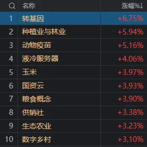 虽然盘中,国资云、液冷服务器,乃至数据中心、低空经济等概念反复活跃,但从收盘情况来看,占据涨幅榜的主要是另外三个题材。