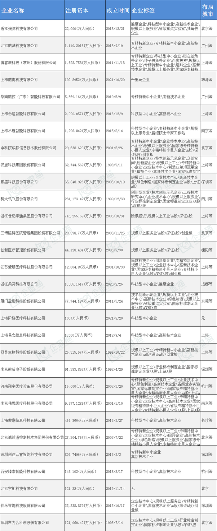 那么,在国内脑机接口产业主要企业动向如何呢?