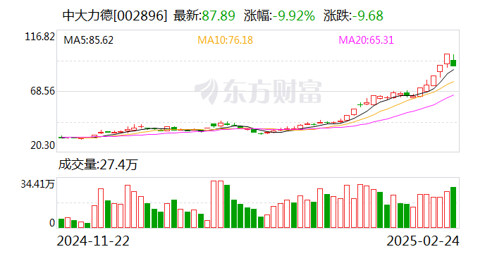 中大力德跌9.92%,龙虎榜上机构买入1.44亿元,卖出6789.72万元